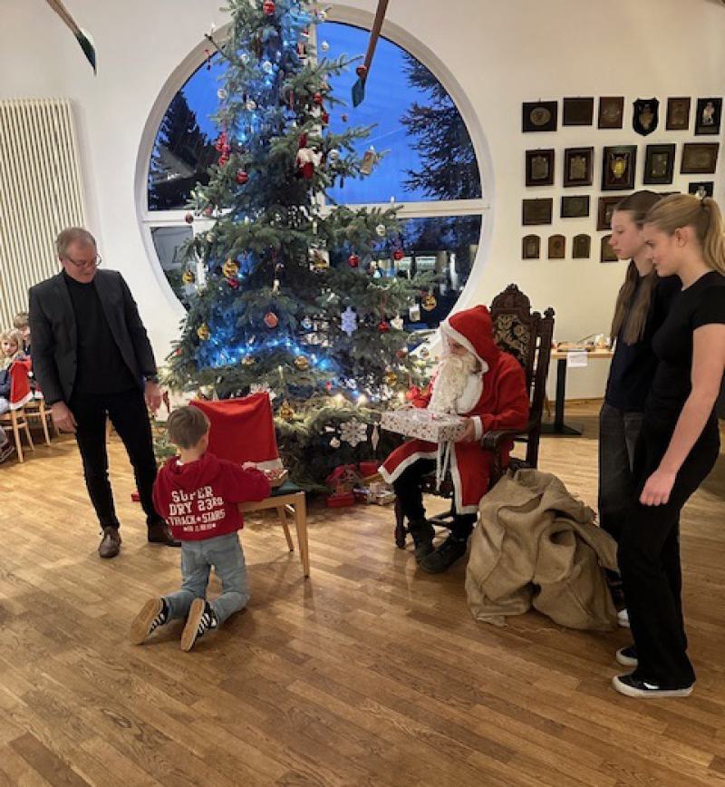 Fast allen Kindern konnte der Weihnachtsmann aus seinen großen Jute-Säcken ein kleines Geschenk übergeben und manch einer bedankte sich mit einer musikalischen Darstellung. Susanne Klages und Jared Strauch sorgten beim Gesang der Weihnachtschöre am Klavier für musikalische Unterstützung.